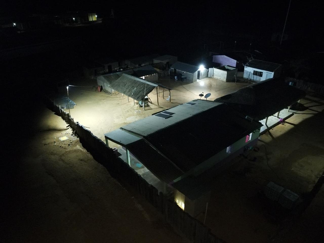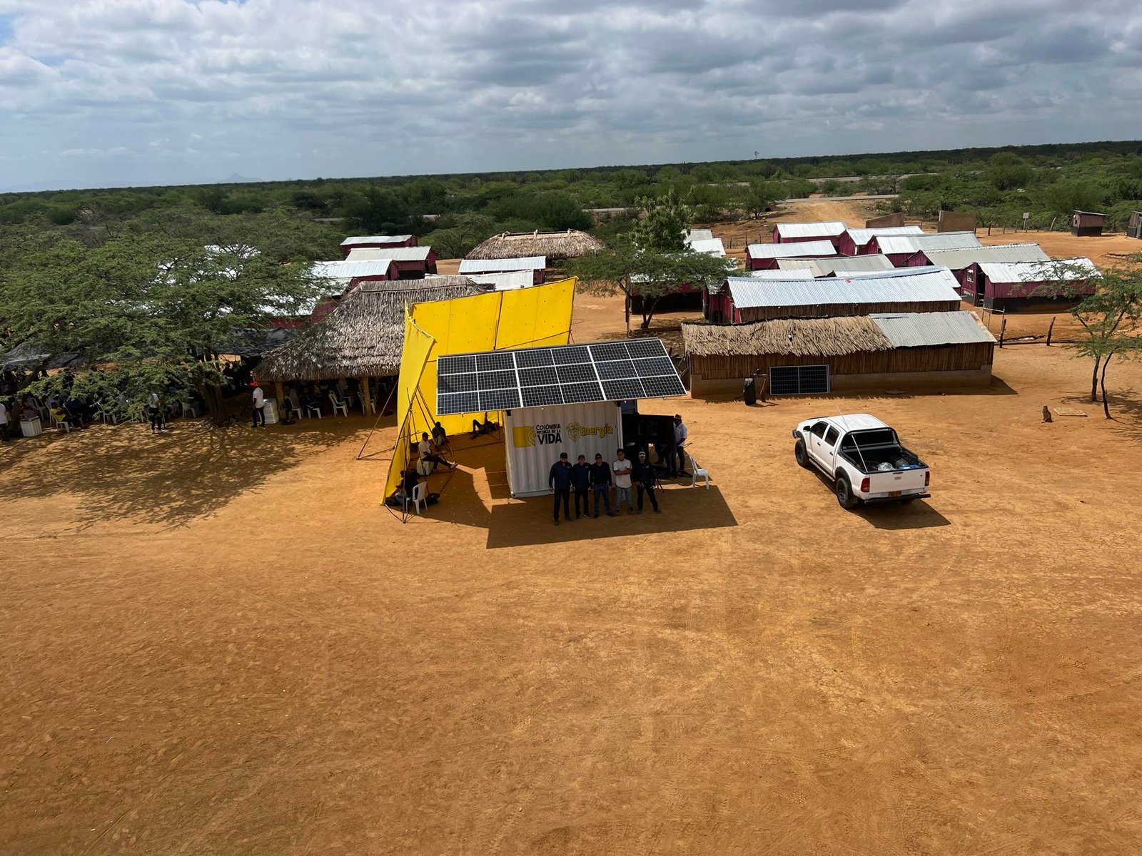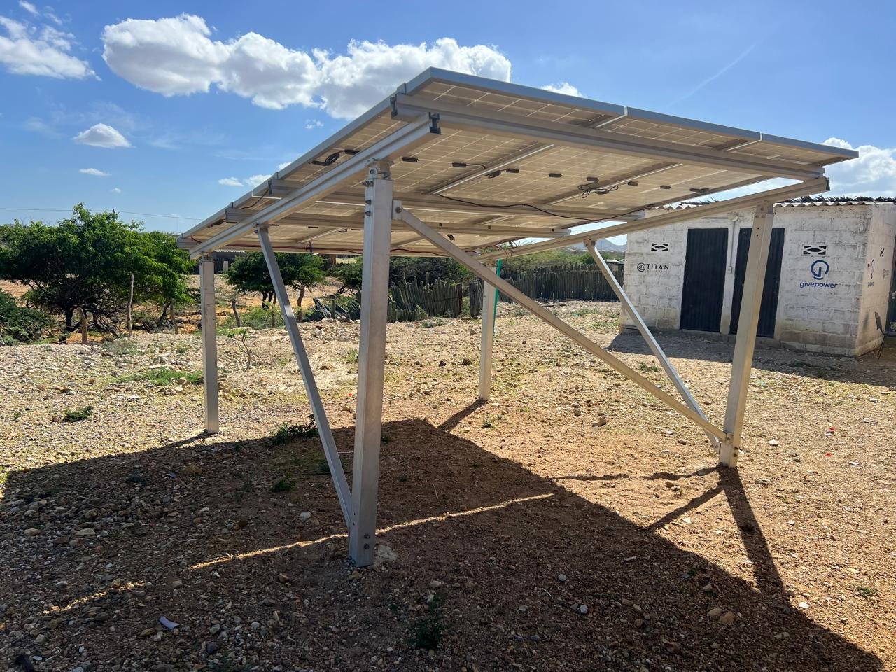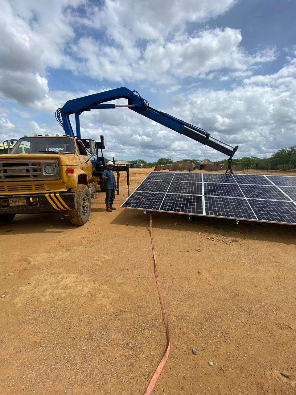 A series of solar panels are installed on a large industrial rooftop under a clear sky at sunset. The sunlight casts a warm glow across the panels and the surrounding area, highlighting the geometric patterns formed by the panels.